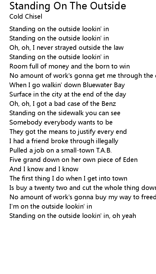 Standing on the outside lookin' in |