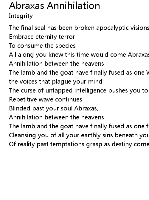 The lamb and the goat have finally fused as one Waters asylum drowning out all the voices that plague your mind |