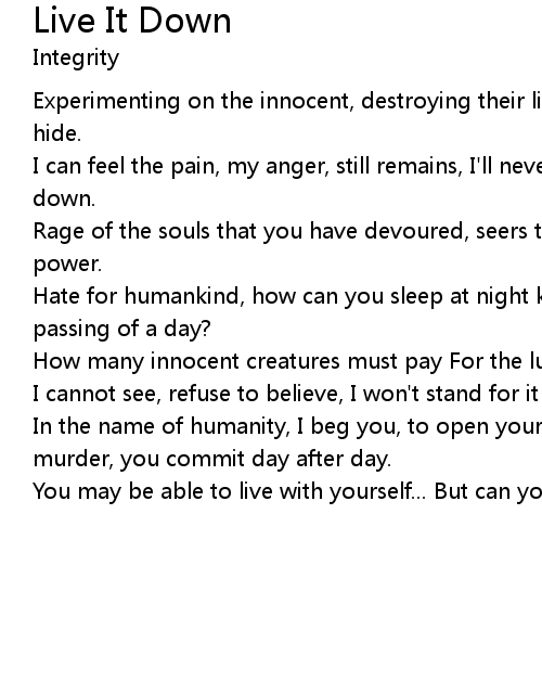 I can feel the pain, my anger, still remains, I'll never let you... Live it down.