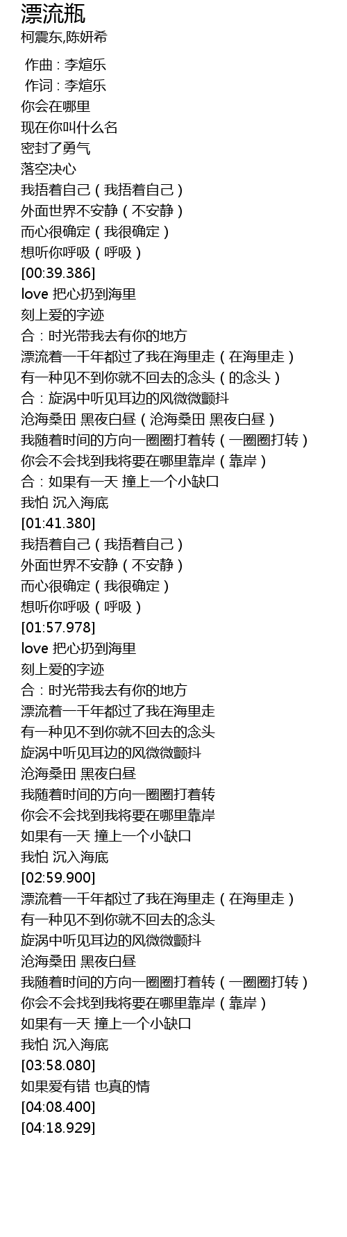 | [00:01.00] | 作词 : 李煊乐 |
