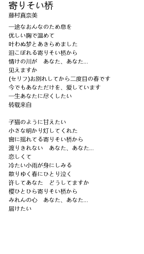 泪こぼれる寄りそい桥から |