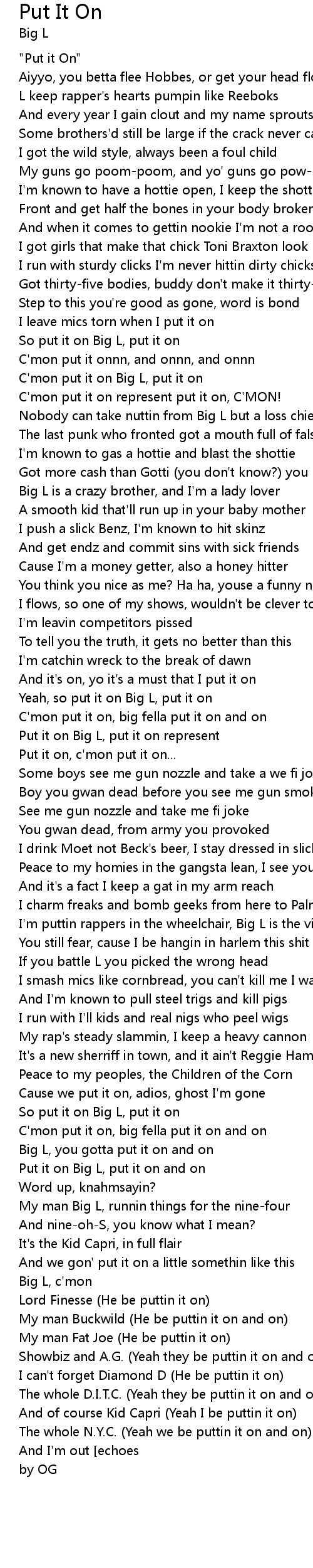 I'm puttin rappers in the wheelchair, Big L is the villain |