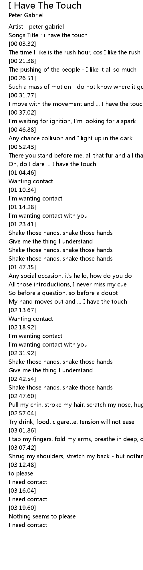 | [00:32.83] | I move with the movement and ... I have the touch |