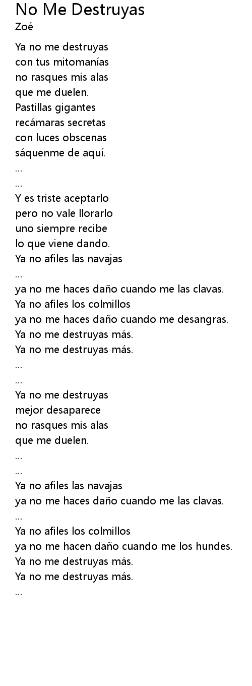 | Ya no me destruyas má s. | |