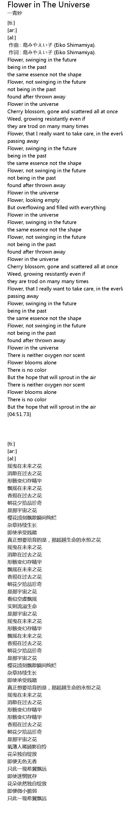 | [00:51.72] | Flower in the universe |