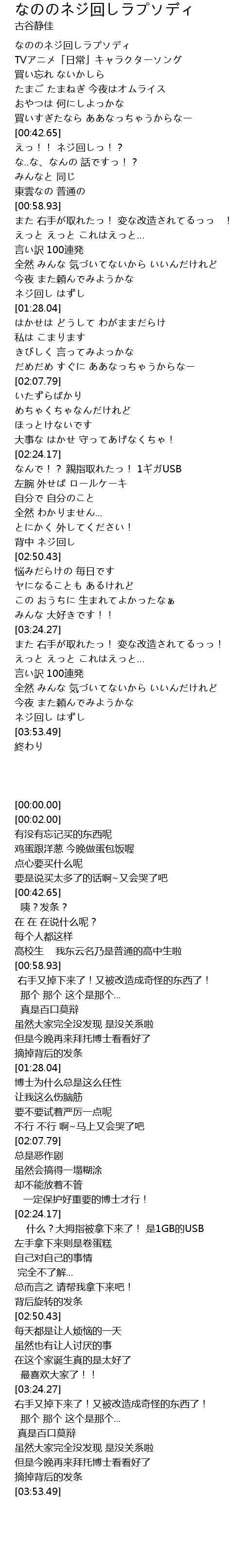 | [00:02.00] | TVアニメ「日常」キャラクターソング |
