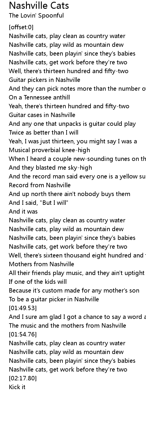 Nashville cats, play clean as country water |