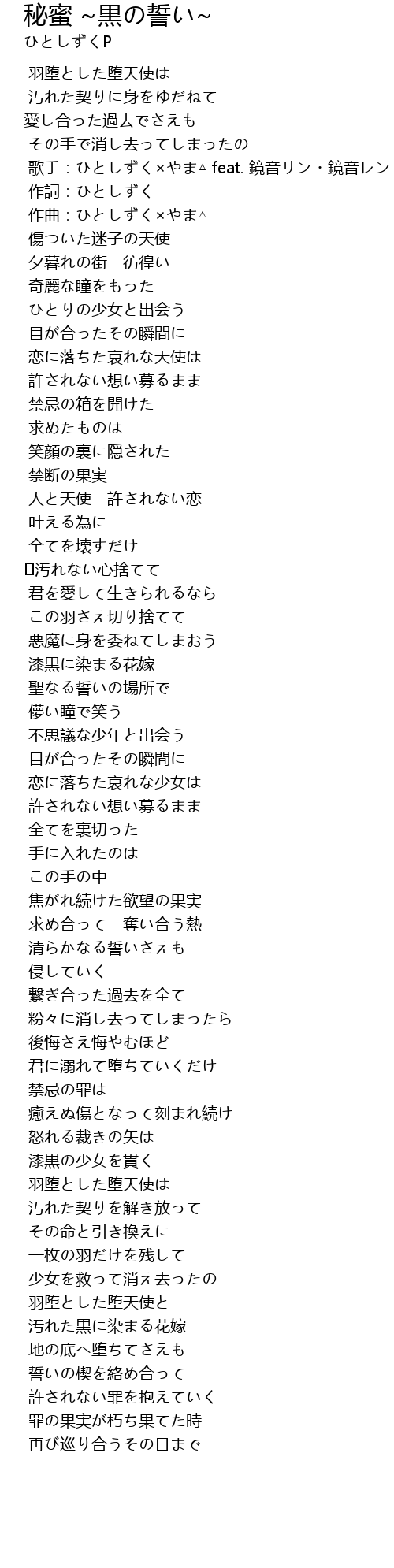 | [00:15.18] | 歌手:ひとしずく×やま△ feat. 鏡音リン・鏡音レン |
