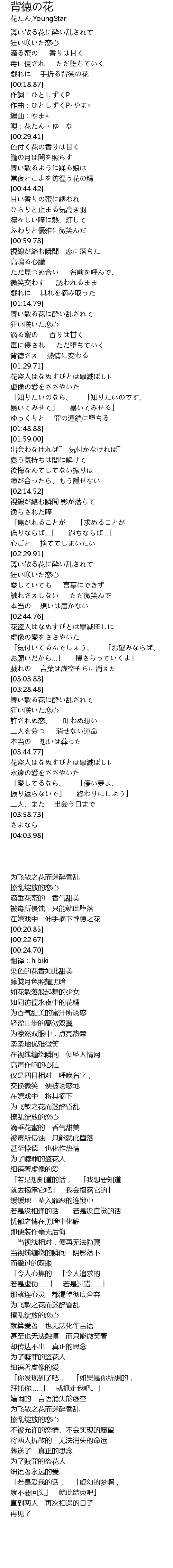 | [03:44.95] | 花盗人はなぬすびとは罪滅ぼしに |