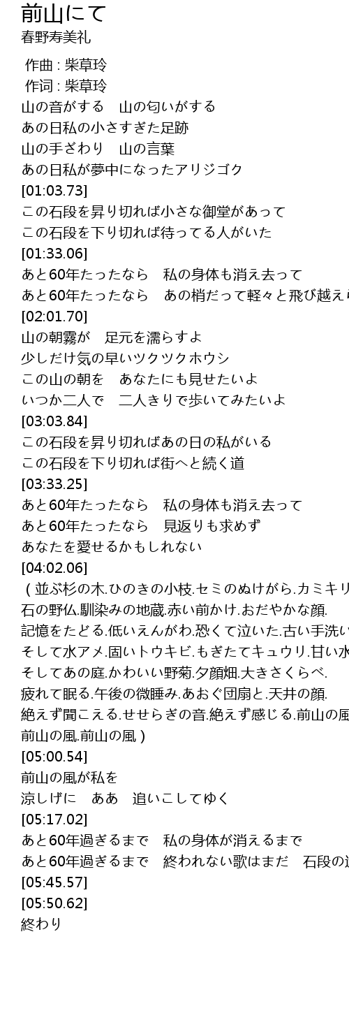 | [00:42.76] | 山の手ざわり 山の言葉 |