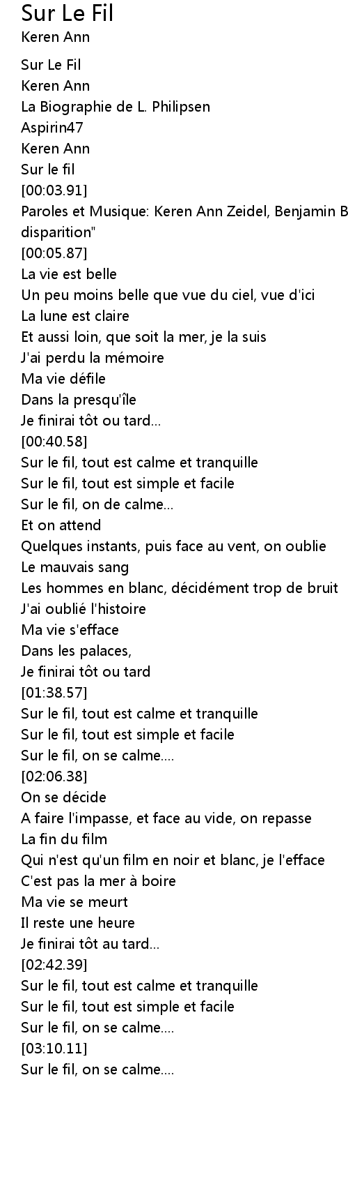 | [01:40.11] | Sur le fil, tout est calme et tranquille |