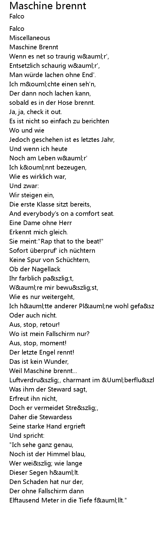 | Song | Maschine brennt |