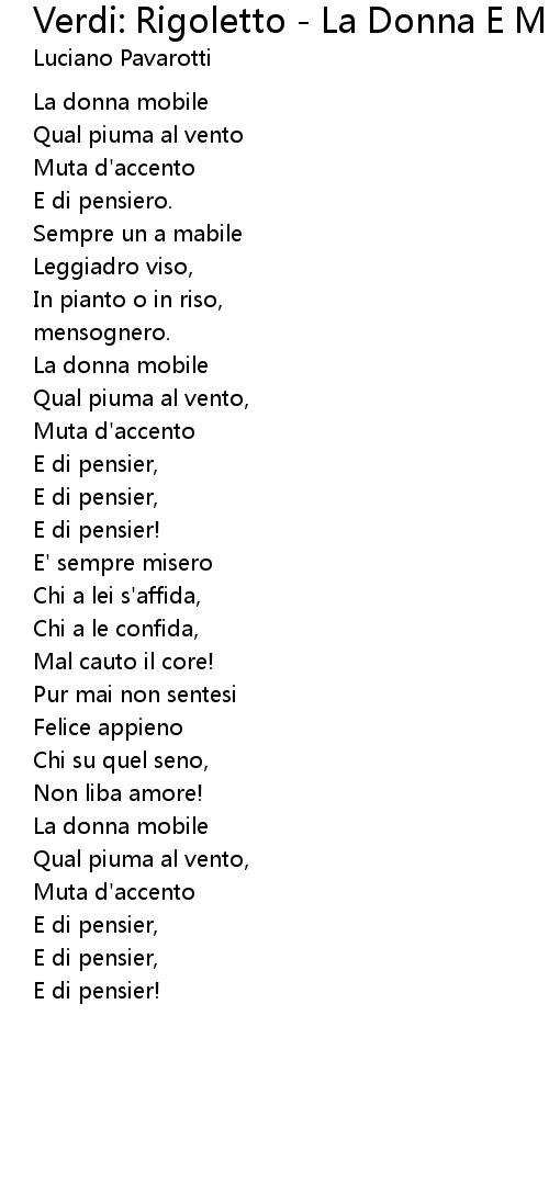| Song | Verdi: Rigoletto - La Donna E Mobile |