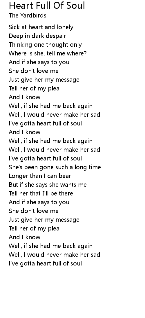 Heart Full Of Soul Lyrics