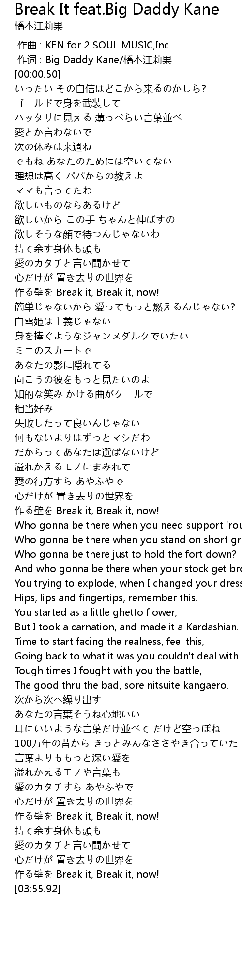 | [00:00.16] | 作词 : Big Daddy Kane/橋本江莉果 |