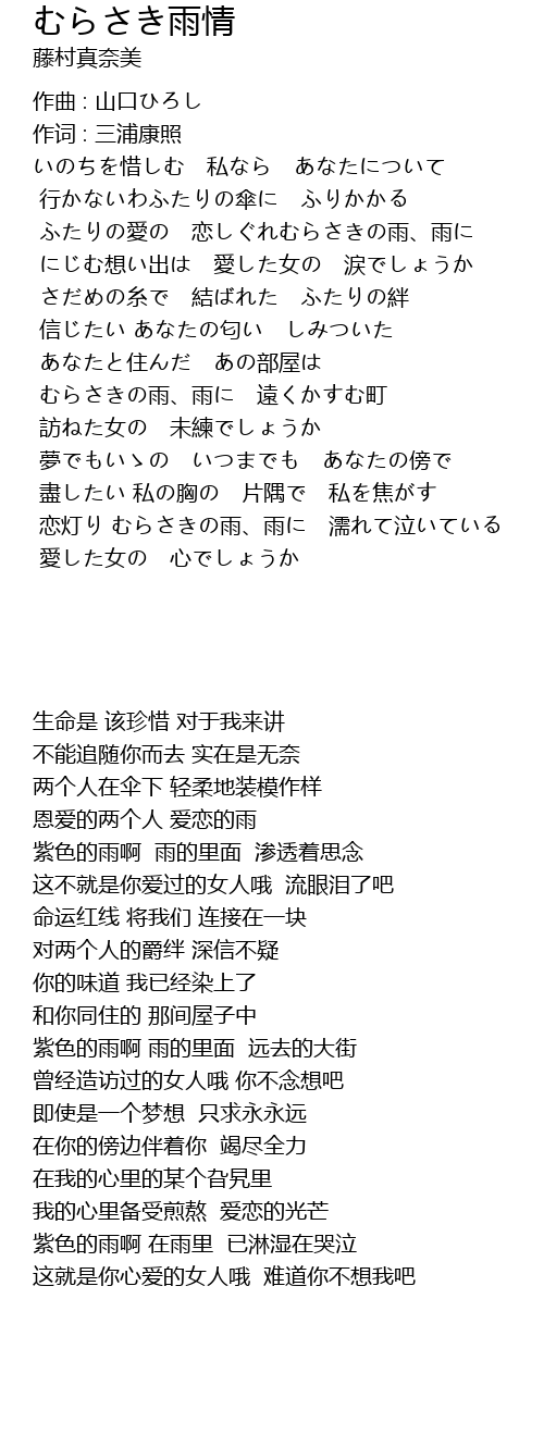 | ふたりの愛の 恋しぐれむらさきの雨、雨に | |