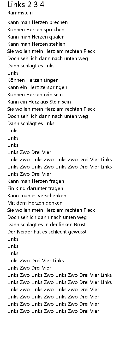 | Links Zwo Links Zwo Links Zwo Drei Vier |