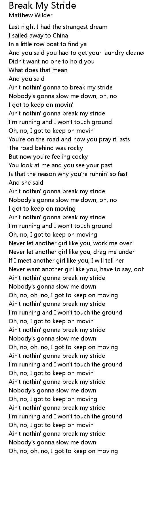 Ain't nothin' gonna break my stride |