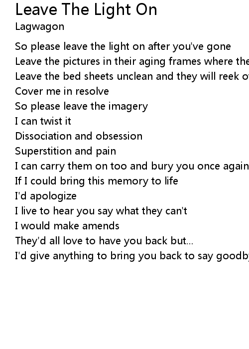 So please leave the light on after you've gone |
