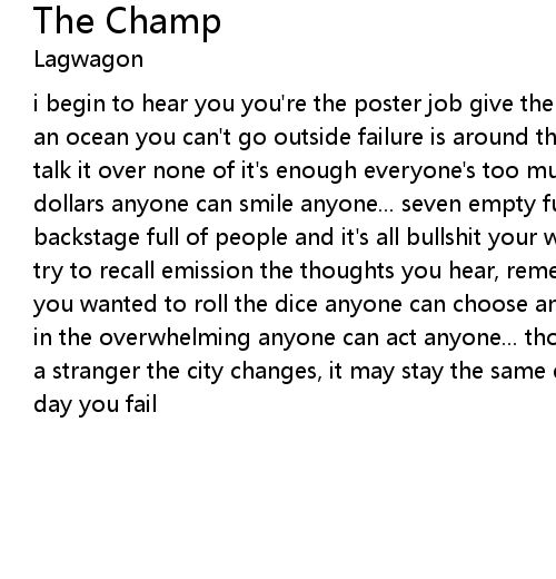i begin to hear you you're the poster job give them all a fading smile entertain an ocean you can't go outside failure is around the corner as you watched you talk it over none of it's enough everyone's too much you're sounding out the dollars anyone can smile anyone... seven empty futures 24 goodbye's empty backstage full of people and it's all bullshit your words seem to say nothing try to recall emission the thoughts you hear, remember when where has it gone? you wanted to roll the dice anyone can choose anyone can lose someday standing in the overwhelming anyone can act anyone... though the nameless faces leave you a stranger the city changes, it may stay the same everyone is waiting for the day you fail |
