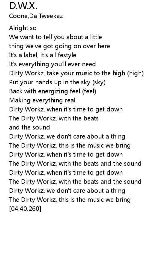Dirty Workz, we don't care about a thing |