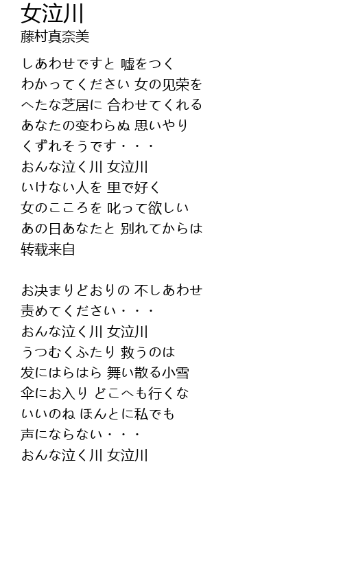 おんな泣く川 女泣川 |