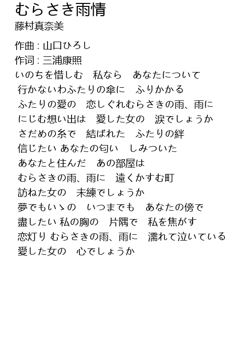 | ふたりの愛の 恋しぐれむらさきの雨、雨に | |