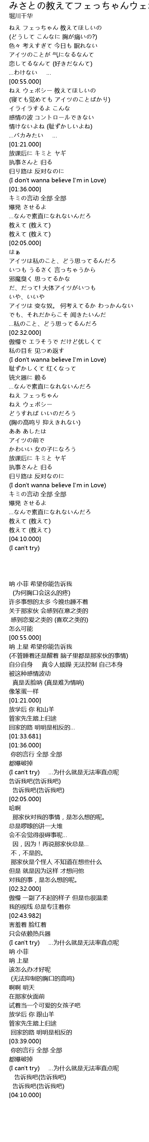 | [03:55.337] | 教えて (教えて) |