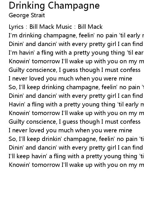 | So, I'll keep drinkin' champagne, feelin' no pain 'til early mornin' | |