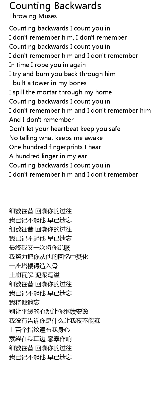 Counting backwards I count you in |