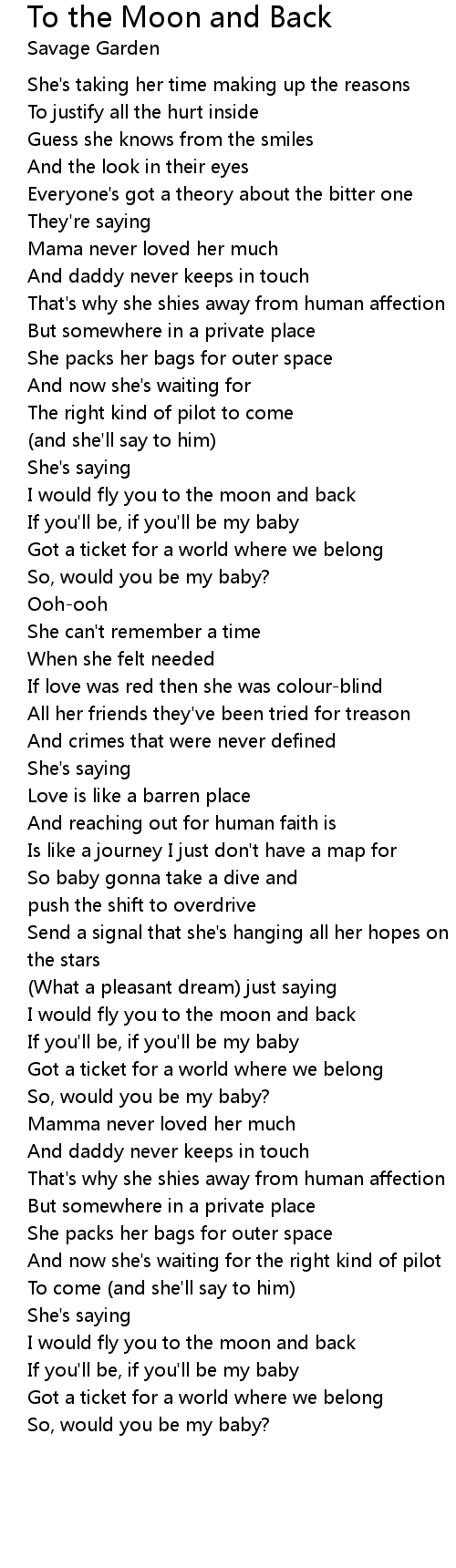 I would fly you to the moon and back |