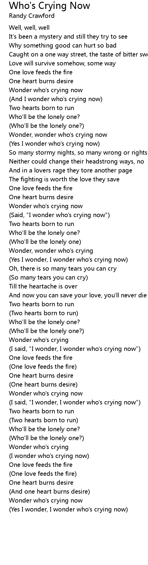 Wonder, wonder who's crying now |