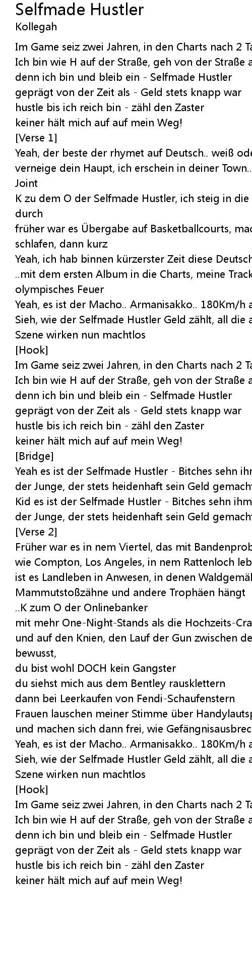 | denn ich bin und bleib ein Selfmade Hustler | |