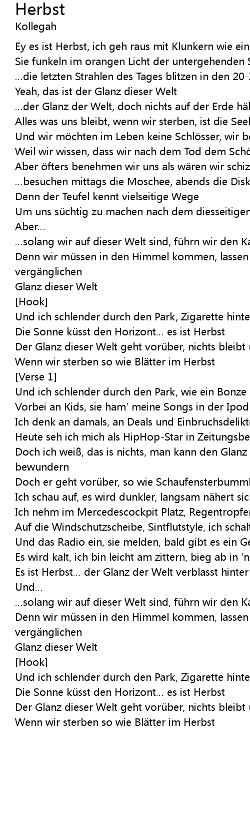 | Ey es ist Herbst, ich geh raus mit Klunkern wie ein Bonze | |