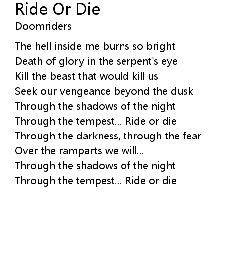 | Song | Ride Or Die |