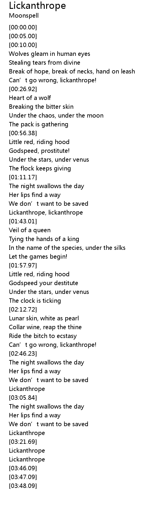 | [01:33.46] | Lickanthrope, lickanthrope |