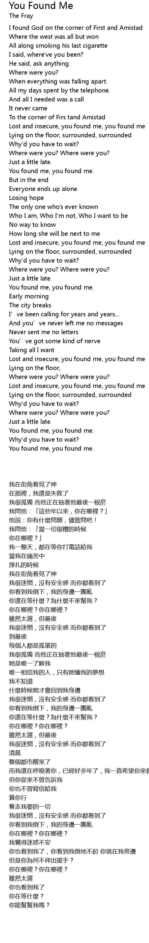 | [02:57.490] | Lost and insecure, you found me, you found me |
