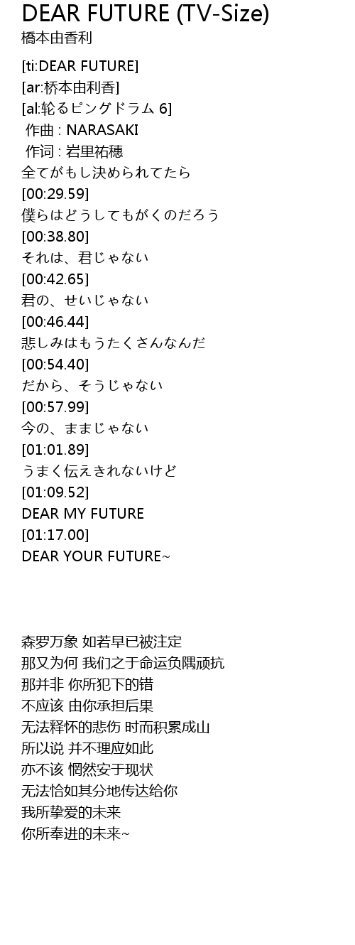 | [01:17.15] | DEAR YOUR FUTURE |