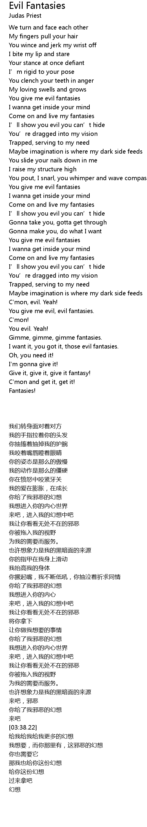| [03:32.17] | You give me evil, evil fantasies. |