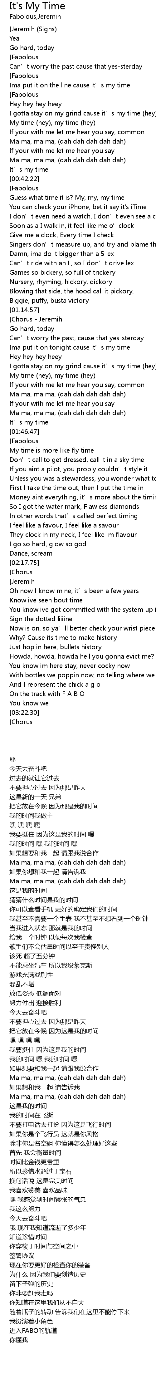 | [00:43.30] | Guess what time it is? My, my, my time |