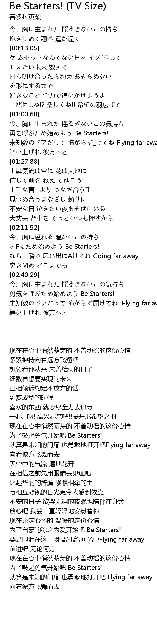 | [03:04.56] | 勇気を呼ぶため始めよう Be Starters! |