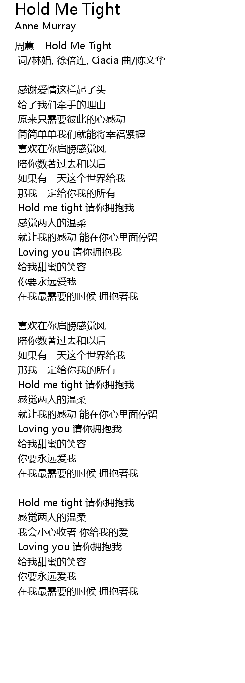 | Hold me tight qǐng nǐ yōng bào wǒ | |