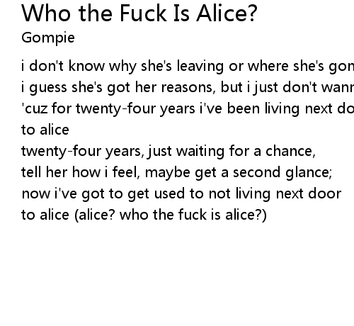 | Song | Who the Fuck Is Alice? |