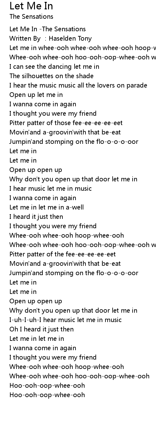 | [00:02.720] | Let me in whee-ooh whee-ooh whee-ooh hoop-whee-ooh |