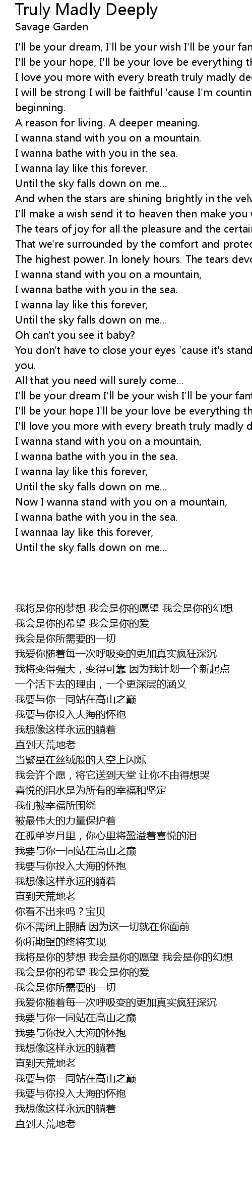 I'll love you more with every breath truly madly deeply do... |