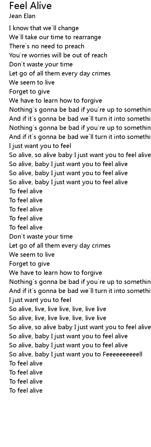 | So alive, so alive baby I just want you to feel alive | |
