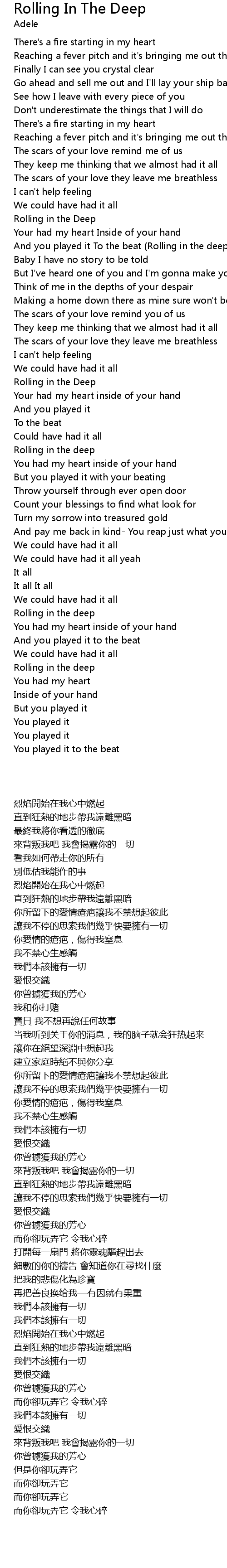 [01:13.250] And you played it To the beat (Rolling in the deep)