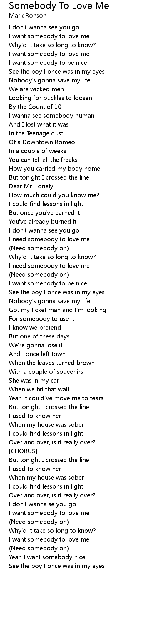 I want somebody to love me |