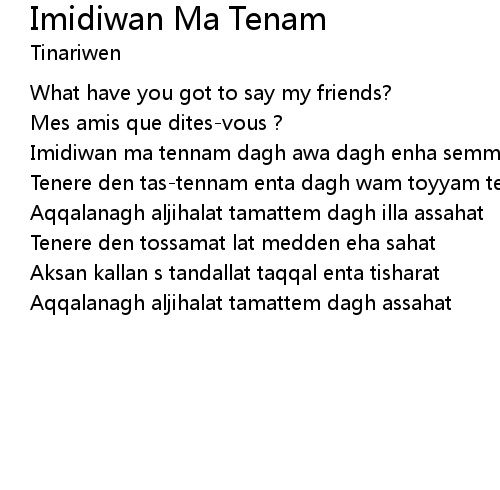 | Aksan kallan s tandallat taqqal enta tisharat | |