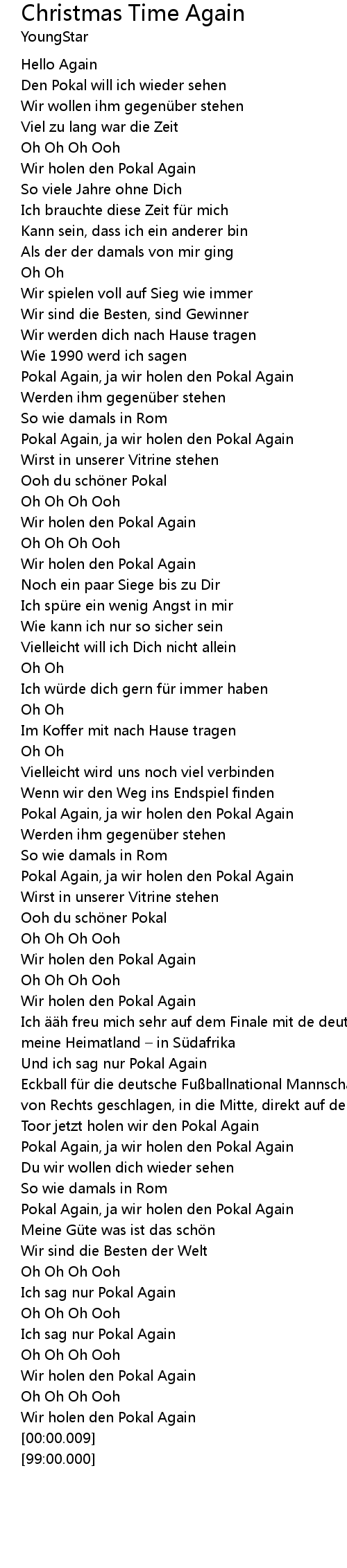 | [02:03.81] | Pokal Again, ja wir holen den Pokal Again |